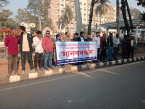 মঙ্গলবার (২৩ ডিসেম্বর) দুপুর ৩ টায় ভোলা প্রেসক্লাবের সামনে এ মানববন্ধন অনুষ্ঠিত হয়। মানববন্ধনে জেলার প্রায় অর্ধ শতাধিক সংবাদকর্মী উপস্থিত ছিলেন। মানববন্ধনে অংশ নেওয়া সাংবাদিকরা অভিযোগ করে বলেন, সম্প্রতি ঘোষিত নতুন সদস্য তালিকা প্রকাশ এর ক্ষেত্রে ভোলা প্রেসক্লাবের গঠনতন্ত্র উপেক্ষা করা হয়েছে। এই তালিকায় পেশাদার ও দীর্ঘদিনের কর্মরত সাংবাদিকদের মতামত ও প্রতিনিধিত্ব প্রতিফলিত হয়নি। ফলে এই তালিকা সাংবাদিক সমাজে বিভক্তি সৃষ্টি করছে এবং ভোলা প্রেসক্লাবের দীর্ঘদিনের ঐতিহ্য ও সুনাম ক্ষুণ্ন করেছে।